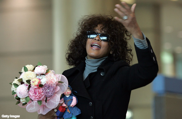 Singer Whitney Houston arrives at the airport in Incheon, South Korea. She is scheduled to kick off her 'Nothing but Love World Tour' in South Korea next month.